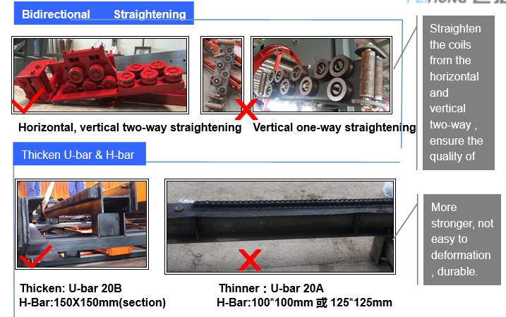 11. A BI irányú egyengető kar nagy szilárdságú ötvözetből készült anyagból készül, nagy szilárdsággal, kopásgátlóval és javítja a kopó alkatrészek élettartamát, a tekercsek vízszintes / függőleges kétirányú beállítását biztosítaná a rudatartó minőségét.